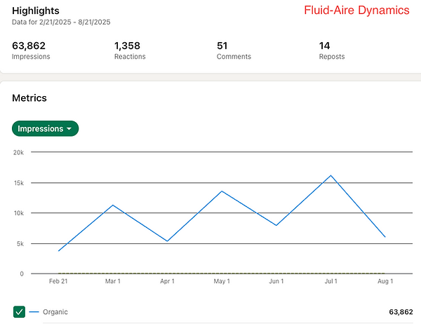 On the left you will see the top 2 performing social posts on LinkedIn for Fluid-Aire Dynamics! Below, you will find the performance of these posts.